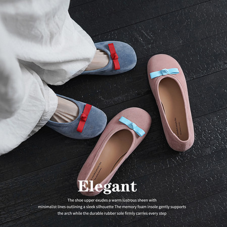 法式尖头单鞋女蝴蝶结平跟飘鞋浅口一脚蹬褶皱软底通勤鞋