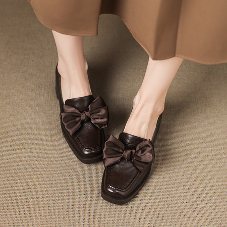 2025早秋新款 草编厚底单鞋 头层牛皮乐福鞋 蝴蝶结玛丽珍一字带搭扣圆头秋冬单鞋子