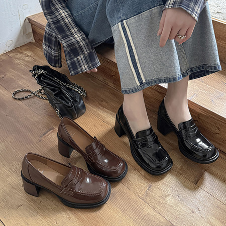 欧美风宴会女鞋尖头一脚蹬通勤休闲浅口百搭增高坡跟气质单鞋